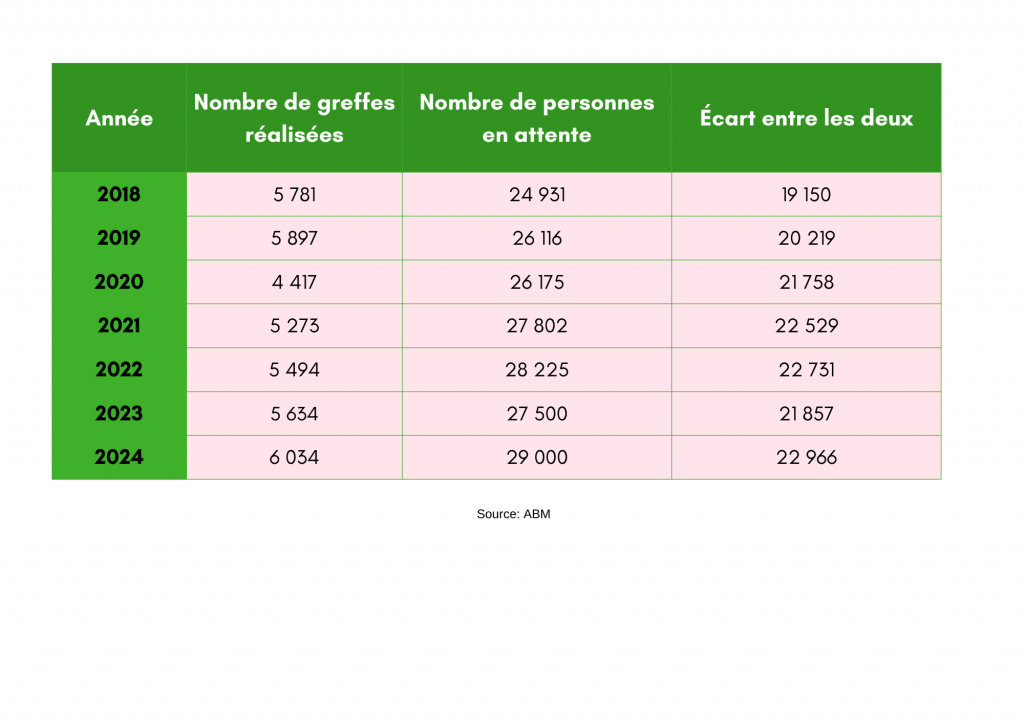 Depuis plus de 30 ans, l’écart entre le nombre de personnes en attente de greffe et le nombre de greffes réalisées ne cesse d’augmenter. Le nombre de greffes réalisées chaque année est de l’ordre de 5000, un nombre dérisoire face au nombre grandissant de patients en attente d’une greffe, …