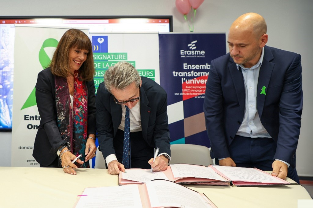 Lors de la cérémonie organisée en octobre 2025, la Charte des Ambassadeurs du don d’organes a été signée par la direction du CHU Henri-Mondor, monsieur le Doyen de l’UPEC et le collectif Greffes+.