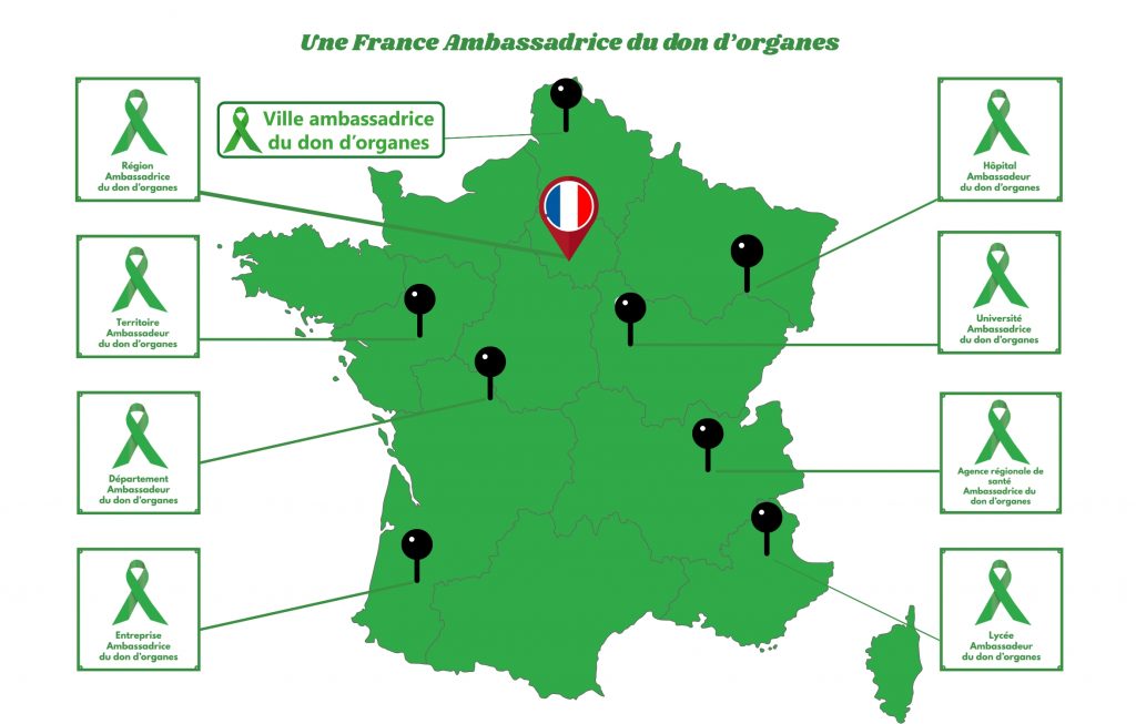 Le ruban vert, symbole national du don d’organes, et les ambassadeurs se complètent naturellement : l’un rend la cause visible à l’échelle individuelle, les autres l’ancrent dans les territoires et les lieux de vie.