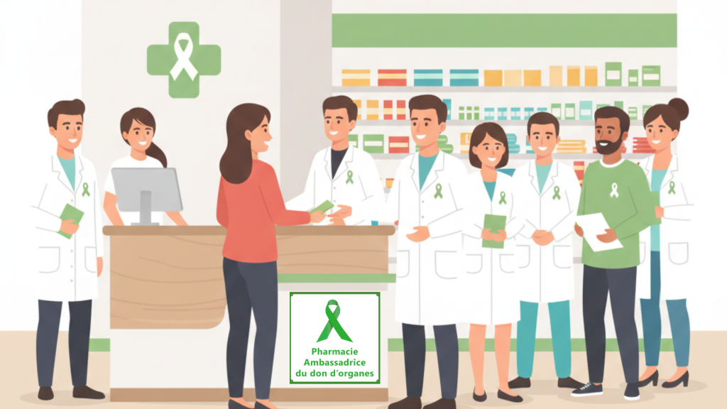 Faire de votre pharmacie une ambassadrice du don d’organes en sensibilisant votre personnel et toute personne fréquentant ces lieux, est un très bel acte de fraternité et de solidarité.